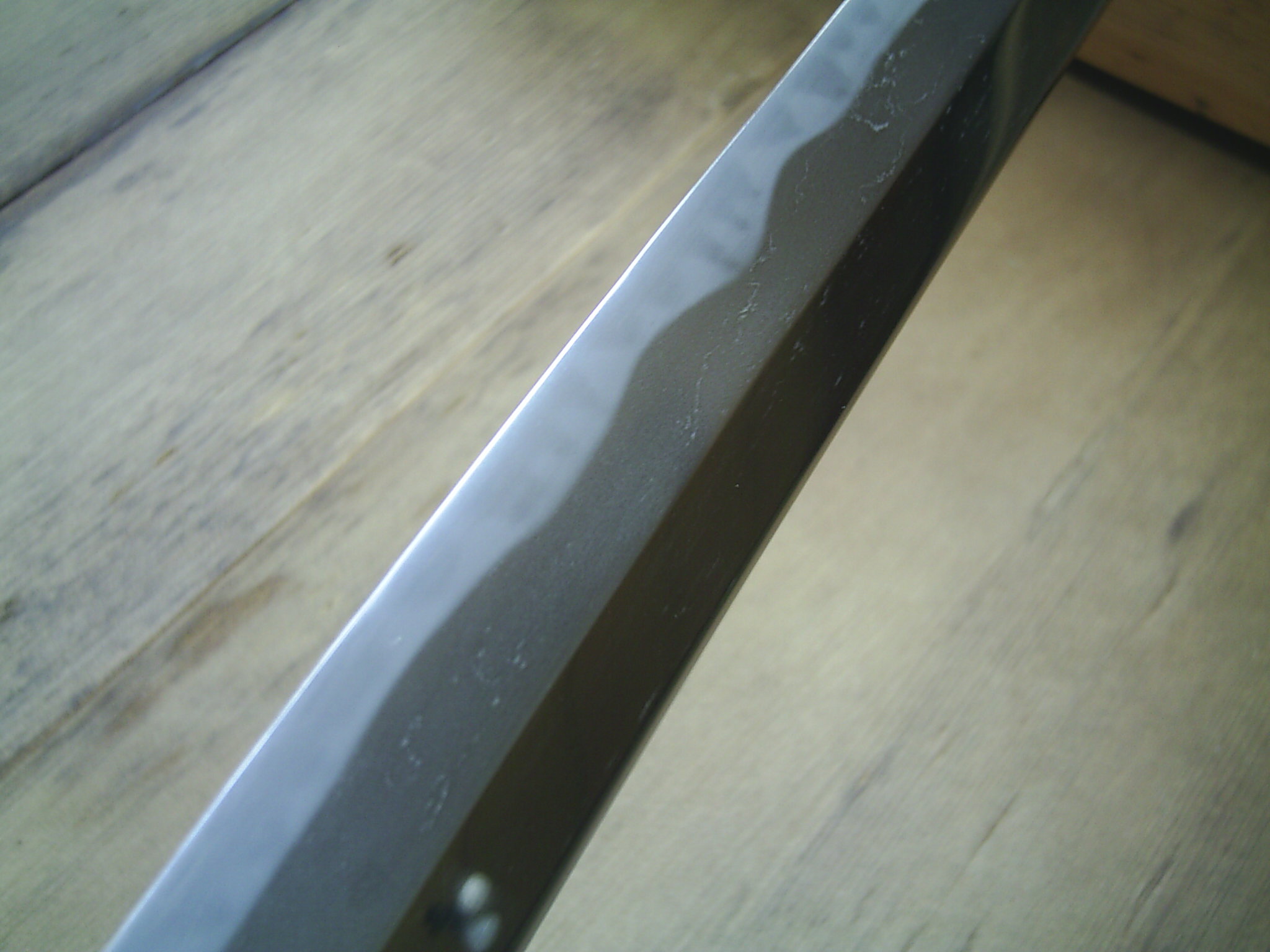 思い出の刀剣 3 思い出の刀剣 2024年10月12日 過去に研磨させて頂きました。長さ2尺1寸5分刀銘 水心子正秀寸法が少し短いですが、素晴らしい御刀でした反りが浅く重ねが厚い造り刃文は中直刃が焼かれておりました。四代目国包、下原吉英又は十代綱広門彫物もあるものもあります新々刀最上作刀剣復古論を唱えたのは有名です。全体的に薄錆があり、下地の崩れがありませんでしたので、改正砥より研磨開始拵えに入れられていた為、白鞘、ツナギを新調してお納め致しましたありがとうございました。#日本刀#日本刀研磨#刀剣#刀剣研磨#刀#脇差#短刀#新々刀#水心子正秀#函館#北海道 日本刀研磨処 函館美術刀剣工房 https://togikoubou.jugem.jp/ 研磨作品 https://kenma.gjgd.net/ インスタグラム https://www.instagram.com/to_kenma 研磨記録 https://kenmakoubou2.blog.shinobi.jp/ 研磨記録 2 https://kenma2310.seesaa.net/ 研磨記録(所蔵刀篇) https://skenma.seesaa.net/ 研磨記録(その2) https://kkenma2.seesaa.net/