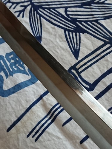 思い出の刀剣 5 思い出の刀剣 2024年11月21日 以前に素晴らしい御刀を研磨させて頂きました。2尺5寸1分の無銘で、元と先の開きがある身幅で、反りが浅め寛文新刀ではないかと思います大互の目の刃文傷などもなく、地肌見所があり面白い御刀でした。改正砥より研磨開始拵えに入れられていた為、白鞘を新調して、お納め致しましたありがとうございました。#日本刀#日本刀研磨#刀剣#刀剣研磨#刀#脇差#短刀#寛文新刀#函館#北海道 日本刀研磨処 函館美術刀剣工房 https://togikoubou.jugem.jp/ 研磨作品 https://kenma.gjgd.net/ インスタグラム https://www.instagram.com/to_kenma 研磨記録 https://kenmakoubou2.blog.shinobi.jp/ 研磨記録 2 https://kenma2310.seesaa.net/ 研磨記録(所蔵刀篇) https://skenma.seesaa.net/ 研磨記録(その2) https://kkenma2.seesaa.net/